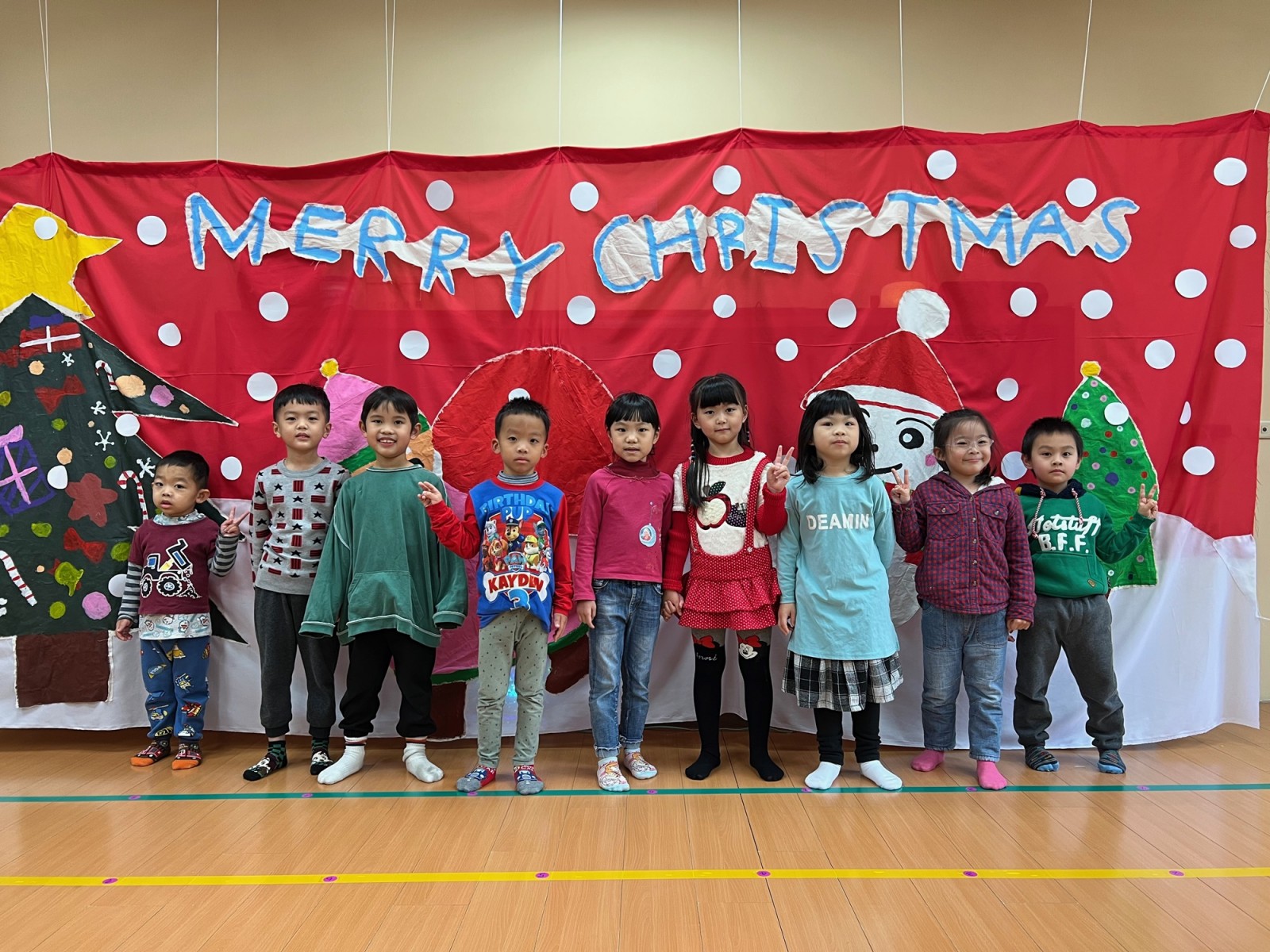 萊恩舉辦的聖誕節親子闖關活動,隔天上午大班場在各班進行表演活動,接著在校園中闖關.遊戲.DIY等活動讓爸爸媽媽與寶貝共同遊戲.最後聖誕老公公來送禮物.帶給孩子難忘的聖誕節活動