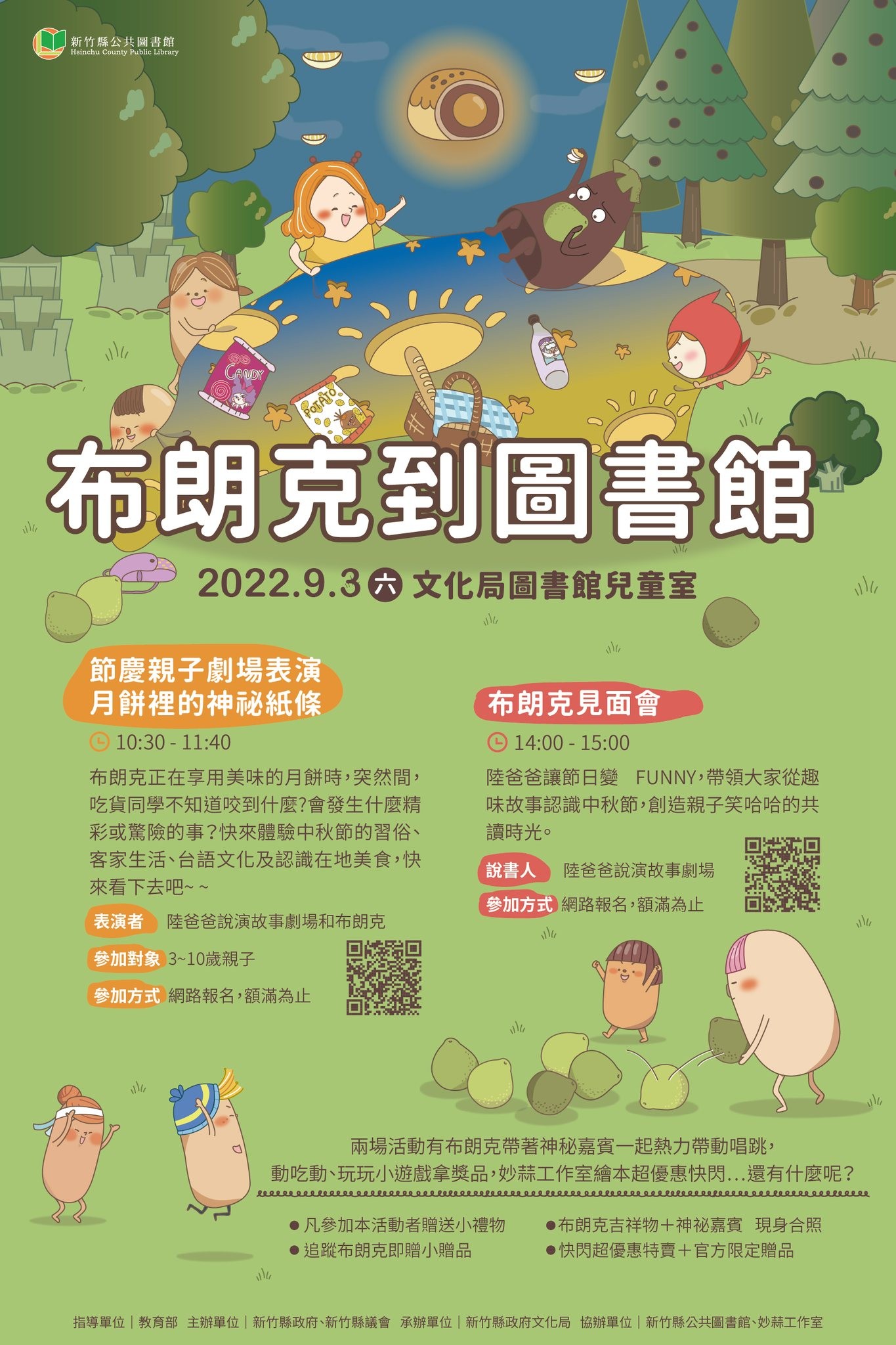 活動簡介:布朗克正在享用美味的月餅時,會發生什麼精彩或驚險的事❓快來體驗中秋節的習俗、客家生活、台語文化及認識在地美食,快來看下去吧~ ~